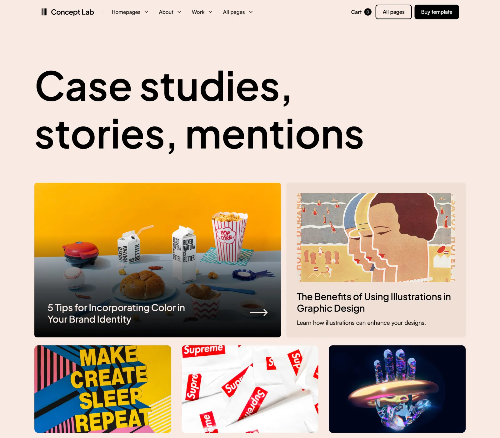 Concept Lab includes a resources and projects collection that are made on the powerful Webflow CMS. This will let you add new content extremely easily