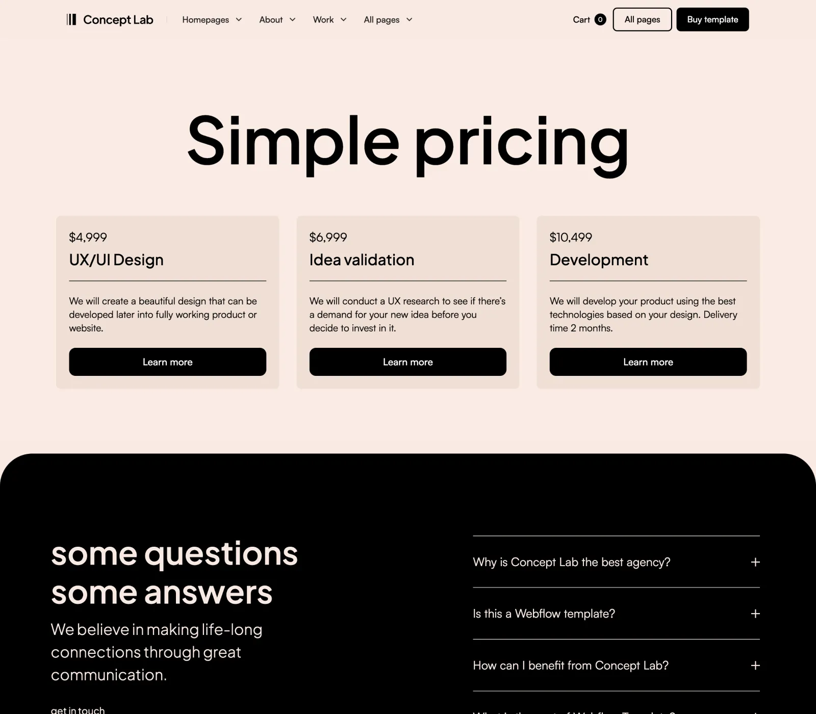 Concept Lab Webflow Template comes with everything you need to to get your agency site off the ground.